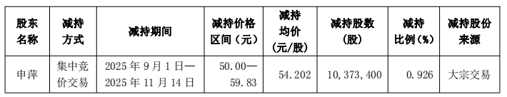 中国经济网北京11月17日电 海斯科(002653.SZ)昨晚披露了关于股份控股股东减持计划实施完毕的公告称,公司于2025年7月26日披露了《关于股份控股股东减持计划预披露公告》,控股股东(王军民)计划在不超过自减持公告事先披露之日起三个月内通过大宗交易或集中竞价方式减持10,373,400股,合计减持比例不超过公司总股本的0.926%。近日,我司收到《库存削减计划完成通知》被沉平起诉。 2025年9月1日至2025年11月14日,沉平先生通过集中竞价交易减持公司10,373,400股。下调幅度为50.00元至59.83元。折价平均价格为54,202元/股,折价率为0.926%。经测算,申平先生通过减持股票,共计转换现金5.62亿元。 3月30日,公司公告称,公司控股股东/实益控制人由王军民先生、范秀莲先生、郑伟先生变更为王军民先生。海思拟发行特定用途A股股票。本次特定用途股票发行募集资金总额不超过人民币1,245,256.70万元(含原金额)。所得款项扣除相关发行费用后,将用于投资新药研发项目和补充流动资金等项目。该公司尚未决定该问题的具体目标。本次特定目的发行股票数量不超过7000万股(含初始数量)。保荐机构(主承销商)为中信证券,保荐代表人为沉子泉先生、王琪先生。据公司此前披露的公告,已获得《关于核准海斯科药业集团股份有限公司非公开发行股票的回复》。中国证券监督管理委员会。 (证监许可[2022]869号),公司拟于2023年2月10日非公开发行人民币普通股(A股)40,000,000股,发行价格为20.00元/股,募集资金总额为8亿元人民币。扣除各项发行费用9,133,782.42元(不含税)后,实际融资净额为790,866,217.58元。上述资金已到账并经我行核实信永中和(特设公司)办公室出具了《海斯科医药集团股份有限公司2020年度非公开发行股票募集资金验资报告》。新浪财经数据显示,申平最初持有2090万股,占总股本的1.93%。申平将于2023年3月14日开始首次减持海思。截至目前,该公司已减持1537.11万股,共计约4.18亿元现金。