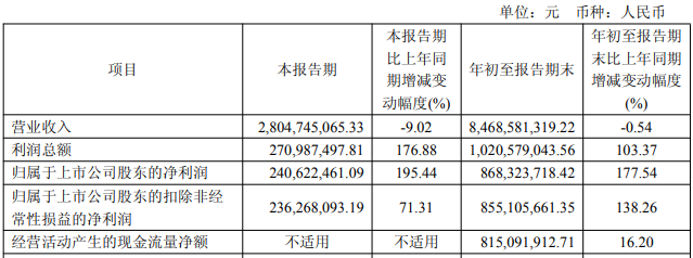 中国经济网北京11月4日电 据富昌药业10月30日发布的2025年第三季度报告显示,公司一至三季度实现营业利润84.59亿元,同比下降0.54%。归属于上市公司股东的净利润8.68亿元,较上年同期增长。归属于上市公司股东的扣除非经常性损益的净利润8.55亿元,比上年同期增长138.26%。经营活动产生的现金流量净额8.15亿元,较上年同期增长16.20%。公司第三季度营业利润28.05亿元,同比下降9.02%。净利润归属表上市公司股东收益2.41亿元,较去年同期增长195.44%。归属于上市公司股东的扣除非经常性损益的净利润为2.36亿元,比上年同期增长71.31%。公司2025年前三季度销售费用为33.41亿元,去年同期为32.71亿元。研究开发费用达1.54亿元(去年同期为1.8亿元)。 10月30日,即该公司公布财报的第二天,扶桑制药股价收盘下跌5.64%。