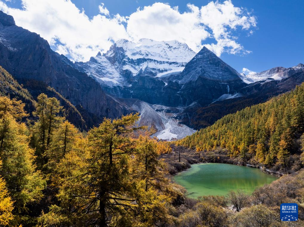 位于白雪皑皑的仙内里山脚下的卓玛拉湖,隐藏在色彩斑斓的森林中(10月26日拍摄,无人机拍摄)。四川省甘孜藏族自治州大城亚丁风景区目前正处于观赏旺季。稻城亚丁风景区主要由仙内里山、杨梅蓉山、善桃吉山三座雪山以及周围的河流、湖泊和高山草原组成。以其独特的生态环境和雄奇秀美的自然景观而闻名中外。稻城亚丁风景区是亚丁市国家5A级旅游景区、国家级自然保护区。 2003年7月,联合国教科文组织批准建立亚丁世界生物圈保护区。图片提供:新华新闻时代南都记者蒋宏景。